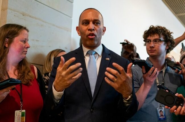 House Democratic leaders teed off on Speaker Mike Johnson (R-La.) on Friday for rejecting a bipartisan Senate bill to reopen most of the Department of Homeland Security (DHS), saying GOP leaders are voluntarily prolonging the…